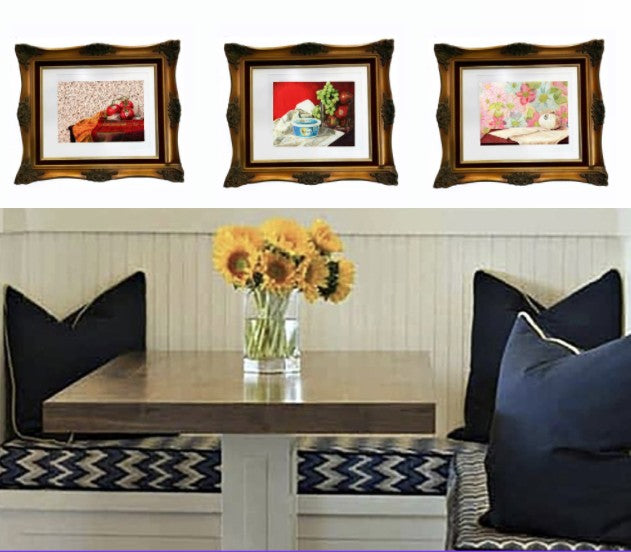 Painstakingly depicted in coloured pencil, these mundane grocery items are put on an approachable pedestal. Clad in austere hyper-realism surrounded in layers of bygone domestic kitsch, this series pokes at a false sense of class while each drawing’s insecurities are bolstered by the bravado of an elaborate and ostentatious gold frame.